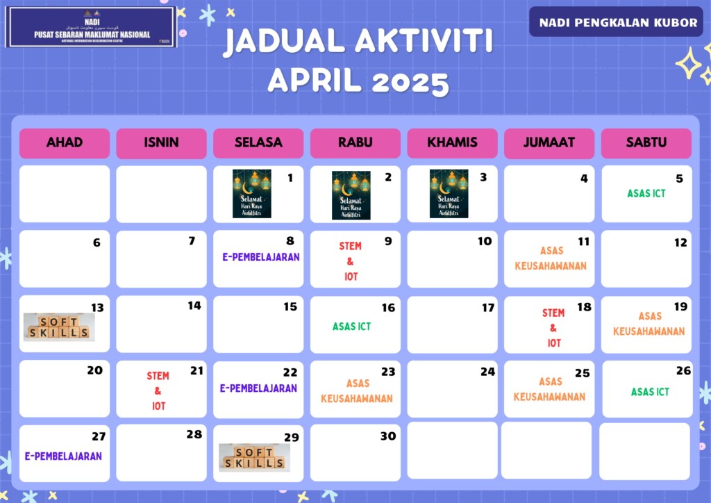 JADUAL AKTIVITI NADI PENGKALAN KUBOR BULAN APRIL 2025