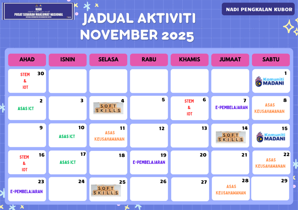JADUAL AKTIVITI NADI PENGKALAN KUBOR BULAN NOVEMBER 2025